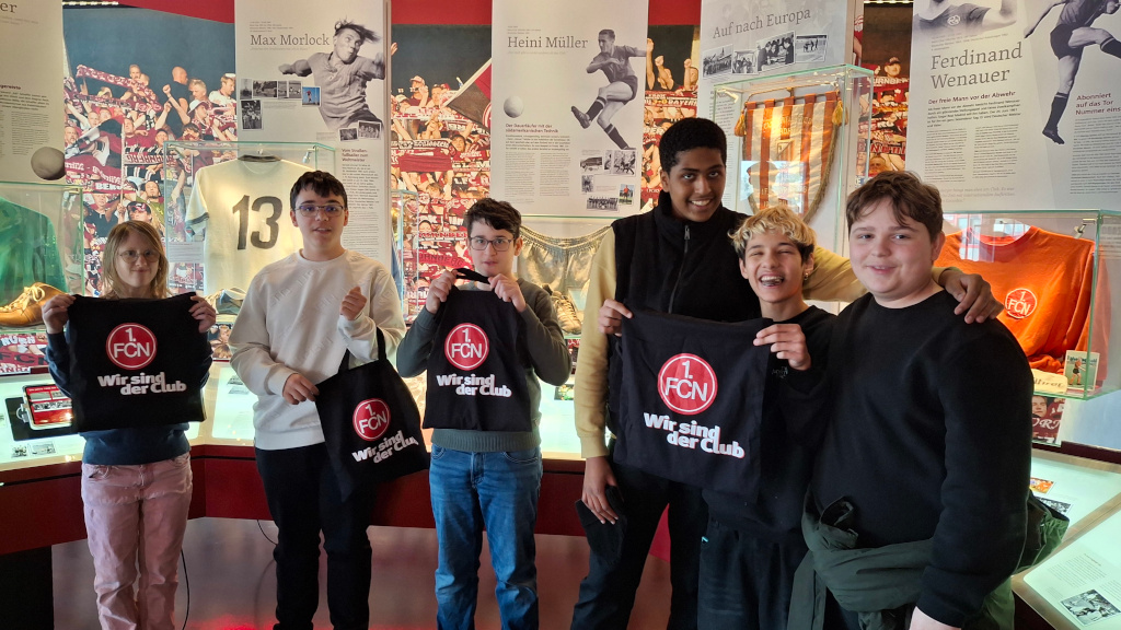 Die Nürnberg AG besuchte diesmal das Museum des 1.FCN. Herr Siegler erklärte uns die Pokale, Trikots und Fotos. Es gab viele Geschichten über den Club zu hören. An Tablets konnte man verschiedene Bilder und Texte sehen. Zum Schluss bekamen wir noch eine FCN-Tasche mit tollen Geschenken darin. Wir drücken dem Club weiterhin fest die Daumen!